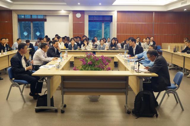 江西金融发展研究院院长肖峻教授的报告主题是“江西科技金融体系建设对策研究”。肖峻教授的报告内容主要分为两部分:一是江西科技金融体系建设的短板,二是科技金融体系建设的对策。关于第一部分,肖峻教授通过比较江西、南昌和深圳的财政收入,江西和深圳的产业基金数量和规模,深圳和江西高校及科研机构产学研基地的数量及规模,得出江西的科技金融体系建设对标深圳存在的硬约束。关于第二部分,肖峻教授分别从建立企业全生命周期金融支持体系、银证保等金融机构全方位对接,以及打造知识产权交易市场等几方面提出江西科技金融体系建设的对策。