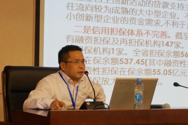 江西财经大学经济发展研究院院长吴志军的报告主题是“鄱阳湖国家自主创新示范区金融支持政策研究”。吴院长主要是从问题、经验和政策建议三个部分来展开报告。首先,吴院长提出鄱阳湖国家自创区发展面临的融资问题与挑战主要在于多元化资金投入渠道尚未形成、间接融资服务体系建设不完备和资本市场融资平台建设不足三个方面。随后,吴院长通过对国家自主创新示范区情况进行研究分析,总结出其经验在于创业风险投资、科技信贷与科技担保、多层次资本市场、科技保险、科技金融顶层设计和金融人才培养几大方面。