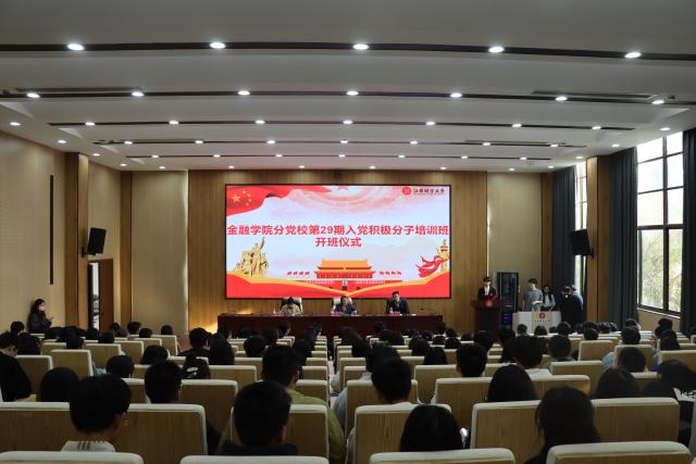 11月2日上午,金融学院分党校第29期入党积极分子培训班在研究生院报告厅顺利开班。金融学院党委书记王琪、学工办主任赵云飞、团委副书记王娟出席仪式。部分预备党员和第29期入党积极分子培训班全体学员加开班仪式。