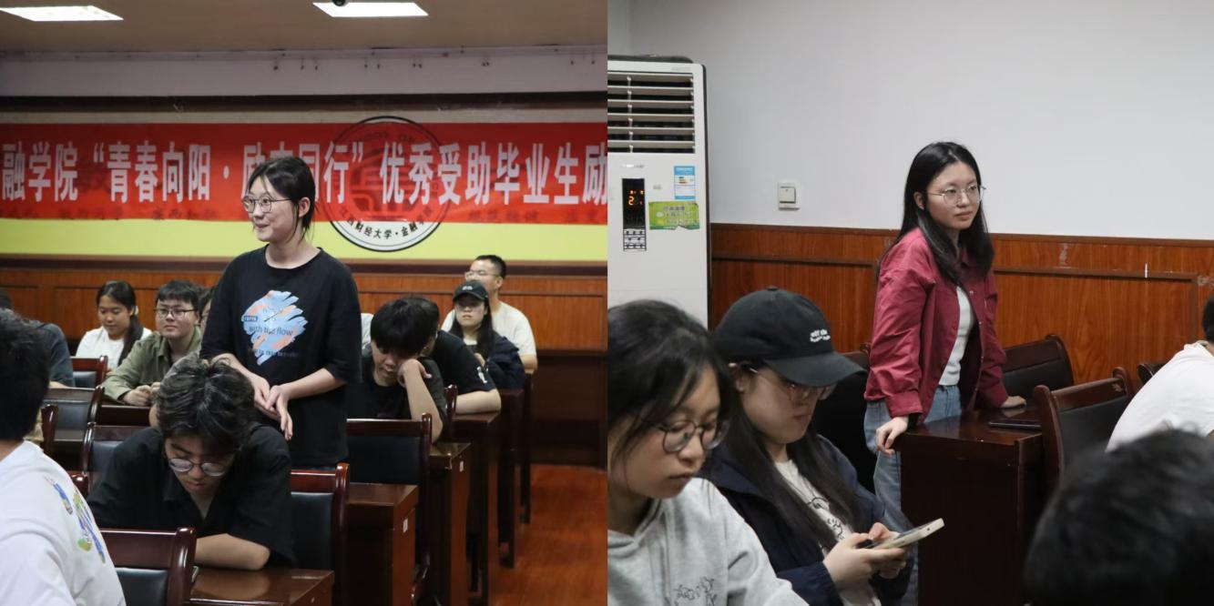 为进一步深化资助育人成效,加强朋辈榜样引领作用,5月23日,金融学院组织开展了“青春向阳·励志同行”优秀受助毕业生励志故事分享会。本次活动特邀三位优秀受助毕业生作为分享嘉宾:保研至华南理工大学的邱鑫峰、签约中国工商银行的杜昇、保研至厦门大学的徐子仪。与会同学以热烈的掌声对三位优秀毕业生的到来表示欢迎。