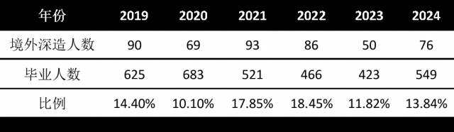 2019年到2024年期间,学院每年有10%以上的学生境外深造,校友遍布全球各地。
