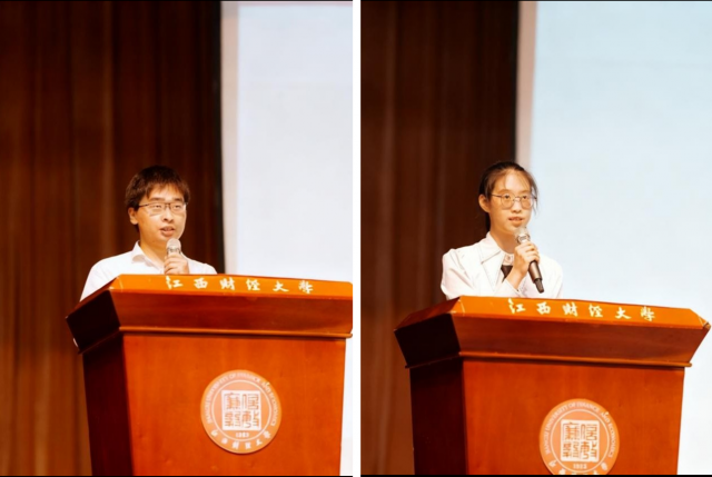 2022级学生代表强子凡以“勤奋学习、敢于破圈、内核稳定”的成长建议,勉励新生勇于突破、积极协作、从容应对挑战;新生代表姚宇欣则表达了成为一名“江财金融人”的自豪,并代表全体新生郑重承诺,未来将始终秉持“仰望星空”的理想追求与“脚踏实地”的务实态度,践行修身律己与携手共进的精神,追求学有所长与心有所爱的成长,在大学时光里奋发向上,用青春奋斗书写精彩篇章。