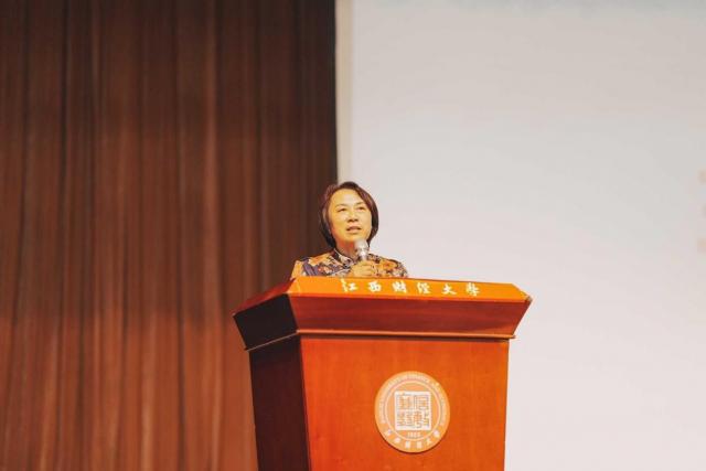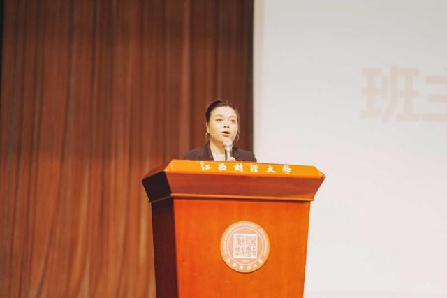 教师代表未钟琴结合自己在江财金融学院 “从学子到教师” 的双重经历,向新生们分享了饱含真情的成长感悟。她强调,大学阶段是人生成长的关键时期,同学们要主动完成从“被动接受”到“积极探索”的转变,在扎实学业中塑造经世济民的金融人格,在集体共处中体悟协作包容的成长温度。