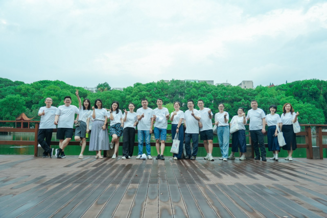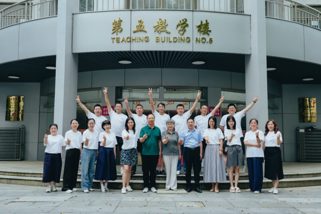On July 12, the Jiaoqiao Campus welcomed the alumni of the 2001 Finance Class (1) for their homecoming reunion. Zhong Xiaolin, Vice Dean of the School and former head teacher, Liu Jinfeng, former Secretary of the Party Committee of the School, and Gui Hefa, former Dean of the School, accompanied and received them. July in Nanchang is usually sweltering, but a timely rain fell just as the alumni arrived, easing the summer heat. Dressed in uniform white T-shirts printed with Reunite and Move Toward the Future, they traveled from all over the country to continue their two-decade-long affection for Jiangxi University of Finance and Economics (JUFE) on the familiar and warm campus. In the morning, the campus after the rain was filled with the fresh scent of plants and trees, and the alumni stepped into the Jiaoqiao Campus one after another. The newly completed teaching buildings, the expanded and upgraded library, and the renovated teaching facilities made everyone stop and stare from time to time; while the old buildings carrying youthful memories instantly brought back scenes from twenty years ago. The changes in our alma mater are truly amazing. We can not only see the power of time but also feel her vibrant vitality, an alumnus said with pride as he gently touched the outer wall of the new teaching building. They strolled along the route engraved in their memories. At the entrance of the familiar No. 5 Teaching Building, teachers and students took group photos side by side. The white T-shirts stood out prominently in front of the camera – this touch of white became the most touching symbol on the campus at that moment.