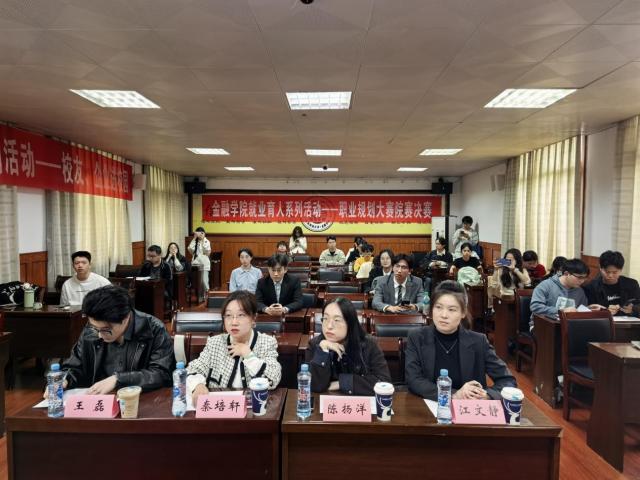 11月12日下午,金融学院第三届职业规划大赛院赛决赛在学院楼二楼西头多媒体教室举行。通联支付网络服务股份有限公司江西分公司综合管理部副总经理秦培轩、中信建投证券股份有限公司理财规划师(金融学院2018级校友)陈扬洋、中信证券南昌贤士一路营业部客户经理(工商管理学院2019级校友)江文静、天职国际会计师事务所江西分所咨询顾问(金融学院2021级校友)王磊、金融学院就业老师涂颖颖担任评委。