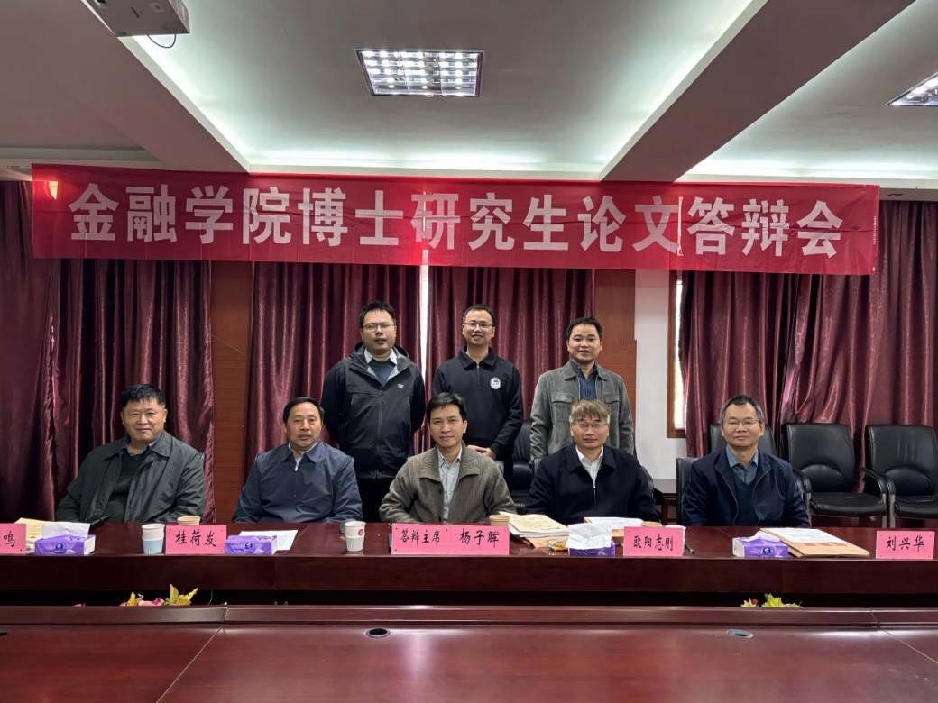 2025年11月21日上午,江西财经大学金融学院2025届金融学博士研究生学位论文答辩会在学院东头会议室举行。本次答辩会严格按照博士学位论文答辩程序规范开展,3名博士研究生顺利完成答辩。