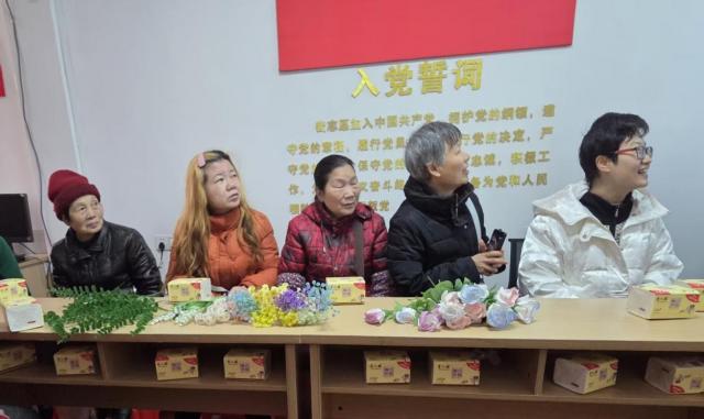 活动现场暖意融融,志愿者们提前做好准备工作,将花材、花瓶、修剪工具等物料整齐摆放,引导社区老人有序入座。主持人详细介绍了本次活动的主题与流程,老人们听后对插花创作充满了期待。